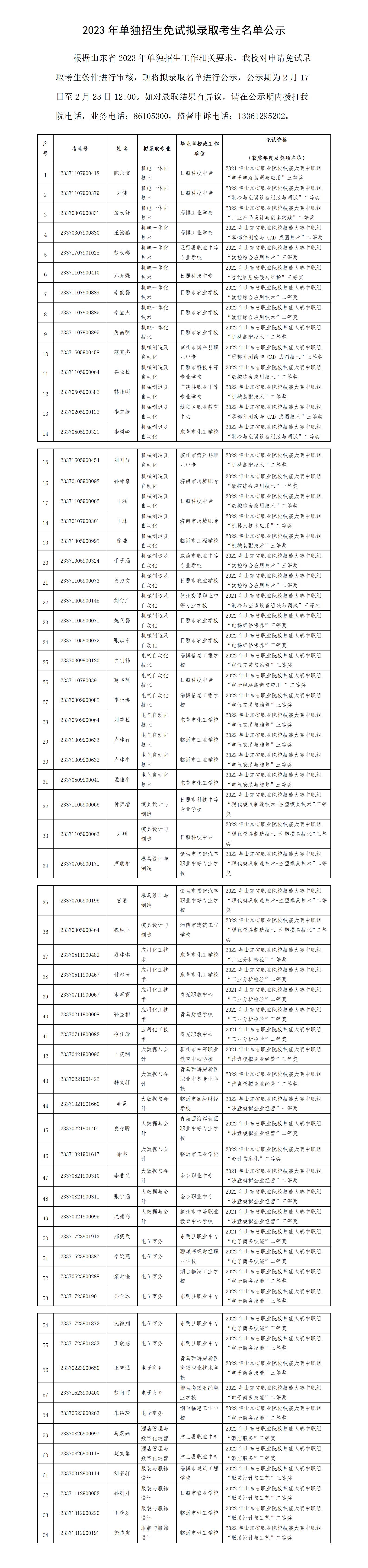 2023年單獨(dú)招生免試擬錄取考生名單公示
