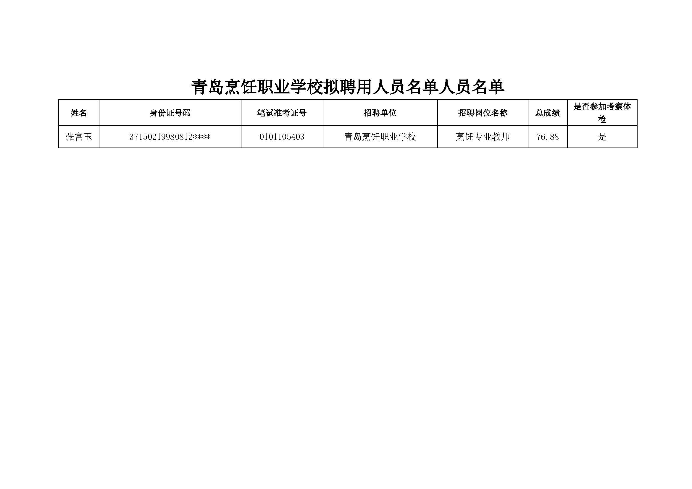 青島烹飪職業(yè)學(xué)校2021年擬聘用人員名單人員名單