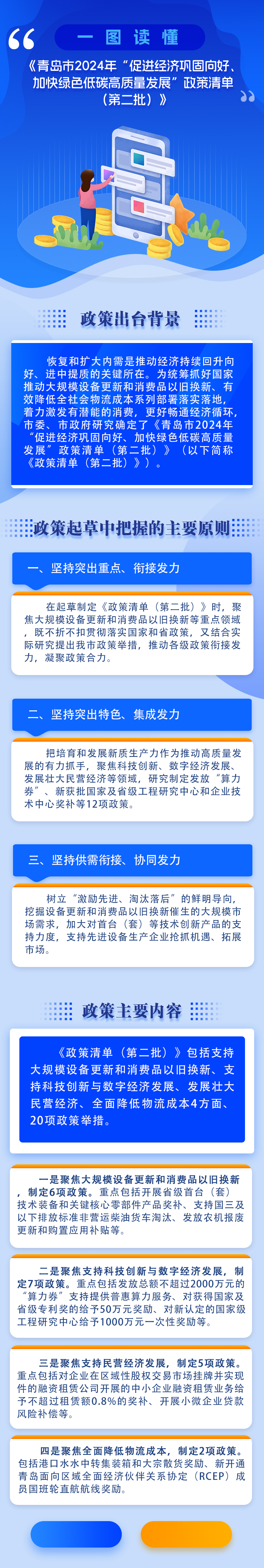 【圖片解讀】《青島市2024年“促進經(jīng)濟鞏固向好、加快綠色低碳高質量發(fā)展”政策清單(第二批)》政策解讀