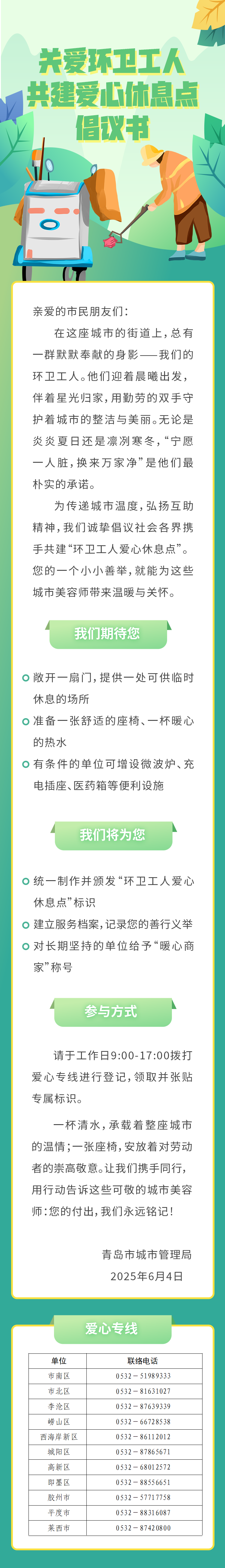 “關(guān)愛(ài)環(huán)衛(wèi)工人 共建愛(ài)心休息點(diǎn)”倡議書