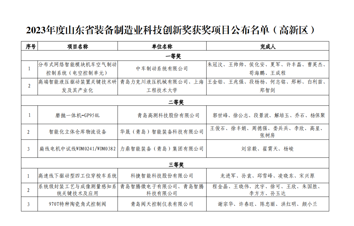 近日,第四屆山東省裝備制造業(yè)科技創(chuàng)新獎獲獎項目名單公布,青島高新區(qū)共有8個項目入選,占全市獲獎項目的30%。青島高新區(qū)經(jīng)濟(jì)發(fā)展部榮獲“優(yōu)秀組織單位”榮譽(yù)稱號。“山東省裝備制造業(yè)科技創(chuàng)新獎”的設(shè)立,旨在激勵全省裝備制造行業(yè)科技創(chuàng)新的積極性和主動性,促進(jìn)裝備制造行業(yè)技術(shù)進(jìn)步和產(chǎn)品創(chuàng)新。此次青島高新區(qū)8個項目獲獎,既是對園區(qū)企業(yè)長期堅持高質(zhì)量發(fā)展理念的高度認(rèn)可,也是對高新區(qū)堅定不移走好創(chuàng)新驅(qū)動發(fā)展之路的充分肯定。