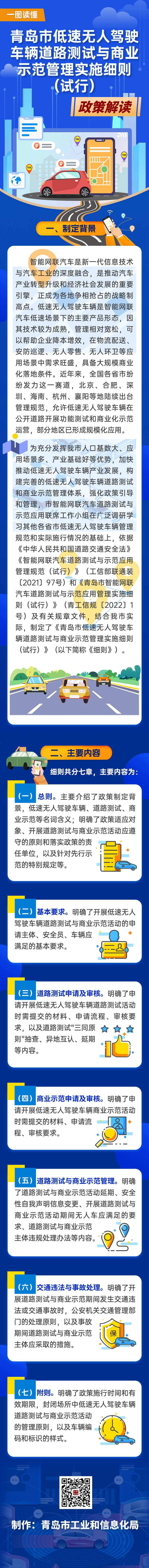 為充分發(fā)揮我市人口基數(shù)大、應(yīng)用場景多、產(chǎn)業(yè)基礎(chǔ)好等優(yōu)勢,加快推動低速無人駕駛車輛產(chǎn)業(yè)發(fā)展,構(gòu)建完善的低速無人駕駛車輛道路測試和商業(yè)示范管理體系,強(qiáng)化政策引導(dǎo)和管理,市智能網(wǎng)聯(lián)汽車道路測試與示范應(yīng)用聯(lián)席工作小組在廣泛調(diào)研學(xué)習(xí)其他各省市低速無人駕駛車輛管理規(guī)范和實際施行情況的基礎(chǔ)上,依據(jù)《中華人民共和國道路交通安全法》《智能網(wǎng)聯(lián)汽車道路測試與示范應(yīng)用管理規(guī)范(試行)》(工信部聯(lián)通裝〔2021〕97號)和《青島市智能網(wǎng)聯(lián)汽車道路測試與示范應(yīng)用管理實施細(xì)則(試行)》(青工信規(guī)〔2022〕1號)及有關(guān)規(guī)章文件,結(jié)合我市實際,制定了《青島市低速無人駕駛車輛道路測試與商業(yè)示范管理實施細(xì)則(試行)》(青工信規(guī)〔2024〕1號)(以下簡稱《細(xì)則》)。