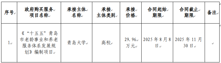 青島市民政局2025年度政府購買服務項目承接主體(《“十五五”青島市老齡事業(yè)和養(yǎng)老服務體系發(fā)展規(guī)劃》編制項目)