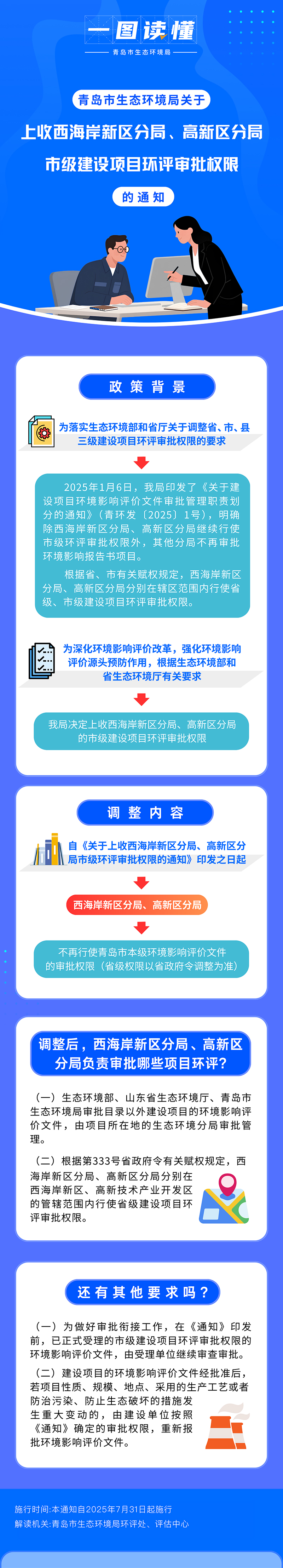 【圖片解讀】青島市生態(tài)環(huán)境局關(guān)于上收西海岸新區(qū)分局、高新區(qū)分局市級建設(shè)項目環(huán)評審批權(quán)限的通知