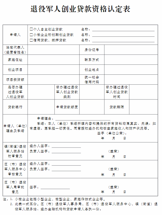 附表:1.退役軍人創(chuàng)業(yè)貸款資格認定表