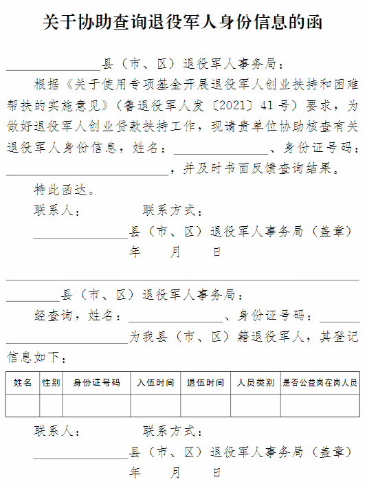 ?3.關(guān)于協(xié)助查詢退役軍人身份信息的函