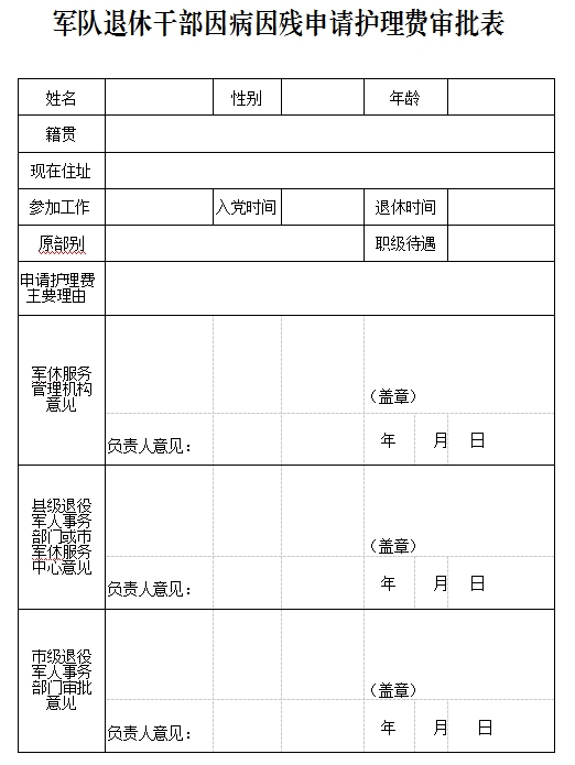 附件:1.《軍隊(duì)退休干部因病因殘申請(qǐng)護(hù)理費(fèi)審批表》