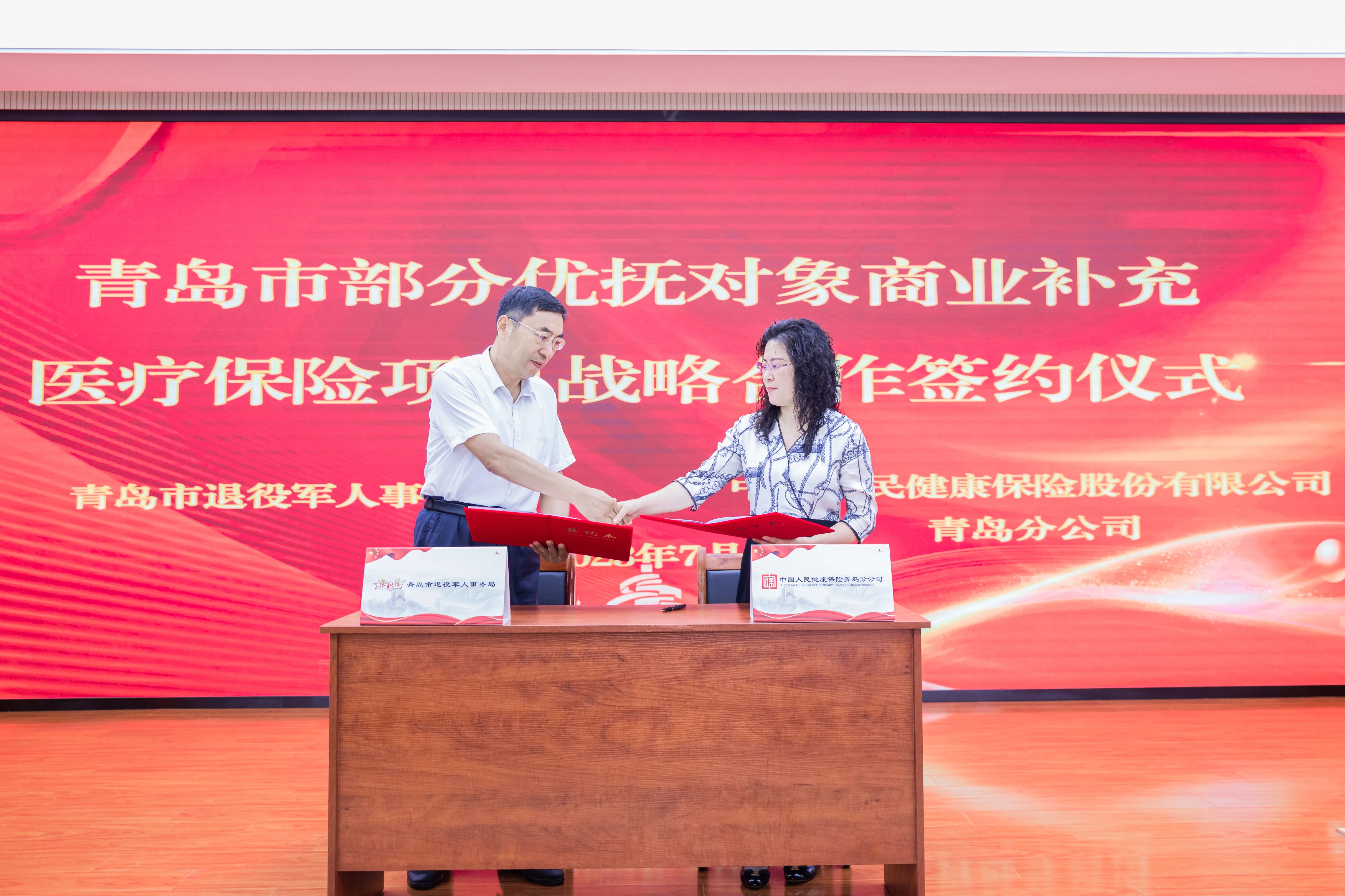 7月3日下午,全國(guó)首個(gè)重點(diǎn)優(yōu)撫對(duì)象商業(yè)補(bǔ)充醫(yī)療保險(xiǎn)項(xiàng)目啟動(dòng)簽約儀式在青島舉行。市退役軍人局局長(zhǎng)孫剛、中國(guó)人民健康保險(xiǎn)股份有限公司副總裁王彤出席儀式并致辭,市退役軍人局副局級(jí)領(lǐng)導(dǎo)干部王明生主持儀式。儀式上,市退役軍人局與人保健康青島分公司簽訂戰(zhàn)略合作協(xié)議,標(biāo)志著青島市重點(diǎn)優(yōu)撫對(duì)象商業(yè)補(bǔ)充醫(yī)療保險(xiǎn)項(xiàng)目正式啟動(dòng)。