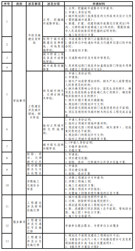 ? ? ? ? ? ?3.青島市高效辦成道路挖掘修復(含道路開口)“一件事”材料清單