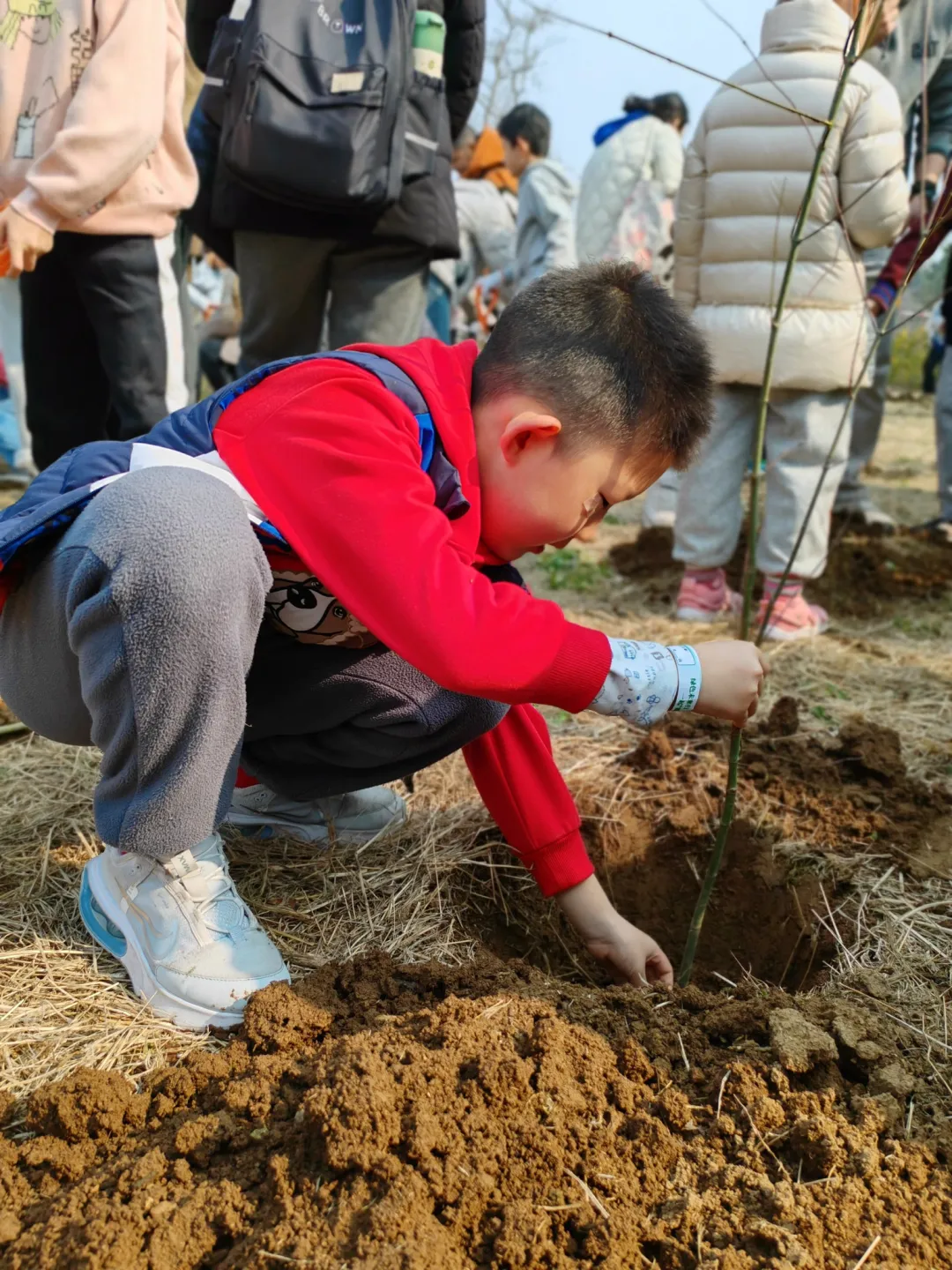 活動(dòng)當(dāng)日,陽光明媚,微風(fēng)拂面。孩子們和家長朋友們早早來到活動(dòng)現(xiàn)場,在工作人員的組織下,有序領(lǐng)取植樹工具和樹苗?;顒?dòng)開始后,大家熱情高漲,分工協(xié)作,有的揮鍬鏟土,有的扶樹正苗,有的提水澆灌,每一個(gè)環(huán)節(jié)都認(rèn)真細(xì)致,現(xiàn)場呈現(xiàn)出一片熱火朝天的勞動(dòng)景象。經(jīng)過一上午的辛勤勞作,上百株新樹苗在山坡上“安家落戶”,為原本略顯荒蕪的山坡增添了一抹生機(jī)勃勃的綠色。