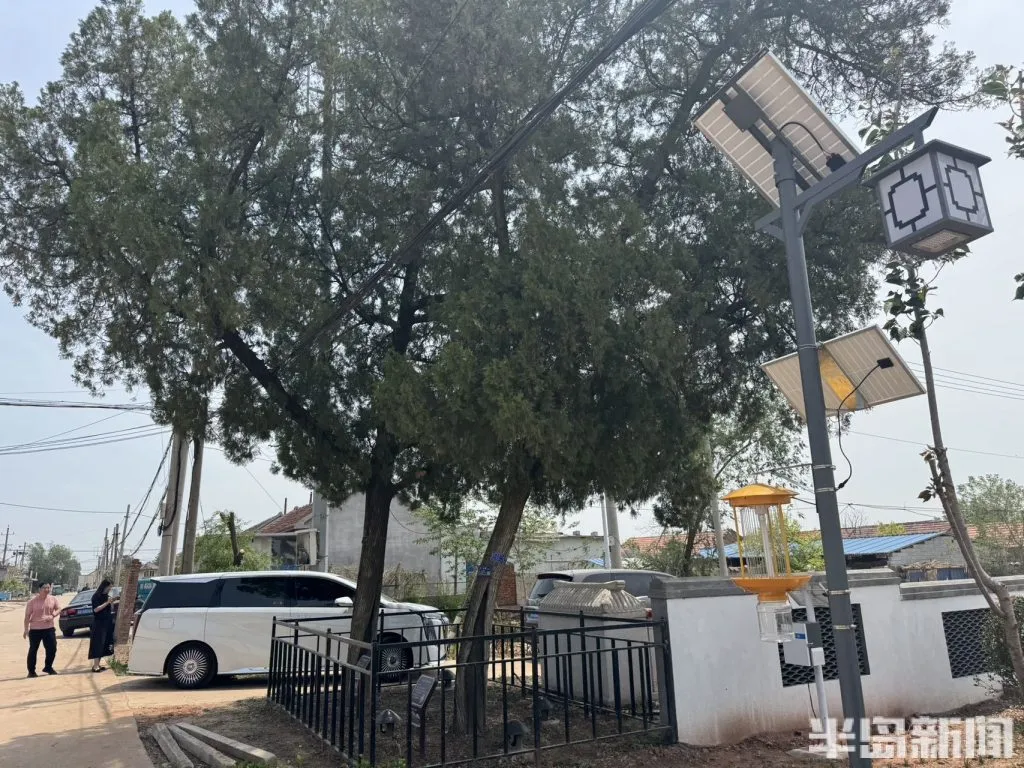 當(dāng)然,古樹(shù)公園的細(xì)節(jié)之處也很用心,記者發(fā)現(xiàn)公園內(nèi)有三組太陽(yáng)能誘蟲(chóng)燈。一根燈桿上有兩個(gè)太陽(yáng)能板,一個(gè)是為路燈供電,一個(gè)是為誘蟲(chóng)燈供電。誘蟲(chóng)燈的四周布滿(mǎn)鐵絲,下方是塑料桶,用作收集昆蟲(chóng)。據(jù)了解,誘蟲(chóng)燈有兩個(gè)作用,一是吸引昆蟲(chóng),防止有害昆蟲(chóng)對(duì)古樹(shù)造成傷害。二是提高村民晚上來(lái)公園的舒適度,減少蚊蟲(chóng)叮咬。
