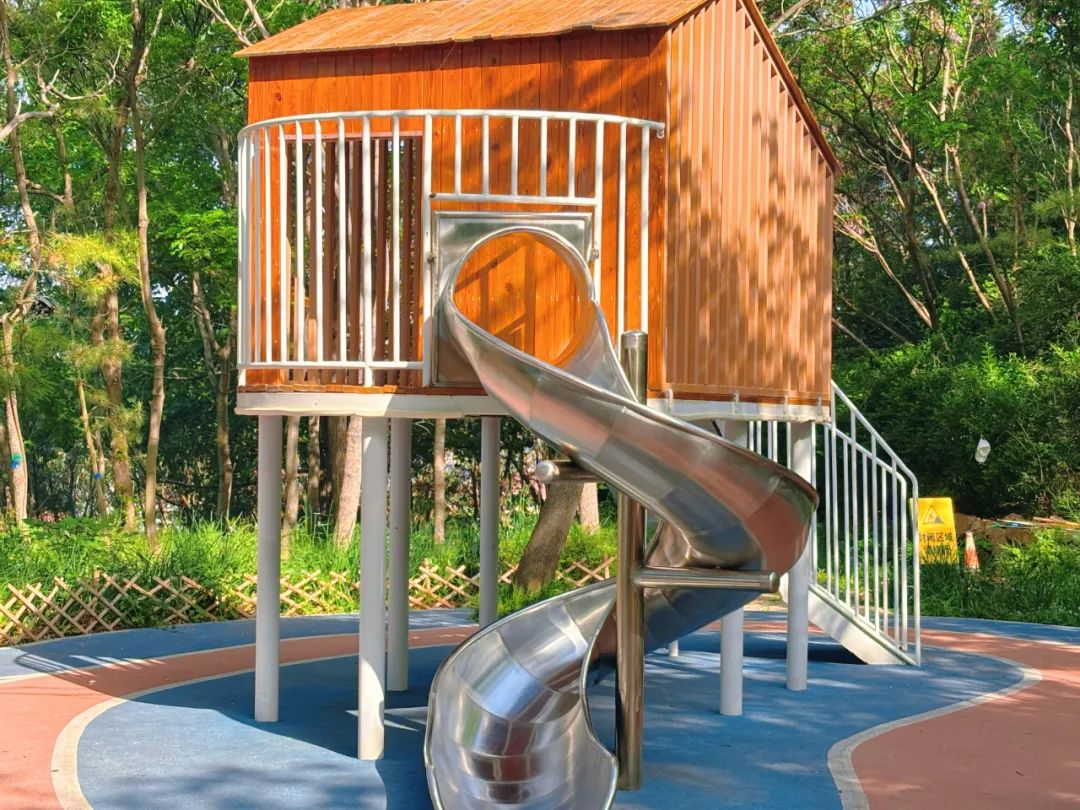 那些以為滑梯只是滑梯的大人,一定沒發(fā)現(xiàn)樹屋滑梯其實是座“童年交易所”——孩子們用尖叫兌換勇氣,膝蓋上微紅的滑痕成立兌換重力加速度的奧秘。